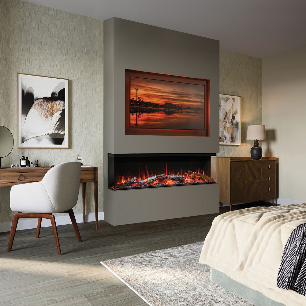The Onyx Avita 160RW Electric offers a significant visual impact that fits perfectly into the majority of modern UK living rooms. Moreover, the 160RW is frequently chosen by customers building custom media walls to house 55” to 65” televisions. Its 1.5 metre span provides an expansive landscape of flickering flames that bridges the gap between a standard fireplace and a full scale architectural installation. As well as stunning looks, each Avita electric fire is packed full of the latest technology innovations. Also offering non-reflective glass as standard.
